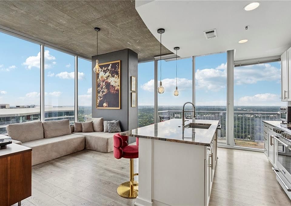 Enjoy breathtaking 180+ degree views from this remarkable 30th floor corner unit at Viewpoint Condominiums. This two-bedroom residence offers both sweeping eastern views of Midtown’s historic residential district, Piedmont Park, Emory, and Stone Mountain, as well as northern skyline views of Midtown to Buckhead that sparkle at night. The home features two private bedrooms with generous storage, a spacious primary suite with double vanities, an oversized tub/shower combo, and a large walk-in closet outfitted with a custom closet system. A recently renovated kitchen with modern appliances, quartzite countertops, and sleek cabinetry complements the LVP flooring throughout. Additional highlights include a full-size stackable front-load laundry and two deeded covered parking spaces in the secure garage. Residents enjoy a clean, quiet building with excellent neighbors, an exceptionally well-run HOA, a 24/7 concierge, pool deck, clubhouse, gym, garden level with grilling areas, and a screening room. The unbeatable Midtown location places you steps from Piedmont Park, the Fox Theatre, the High Museum, MARTA, restaurants, shopping, and nightlife.
