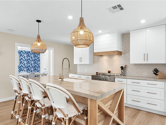 Just across the street from the beach, this lovingly updated and renovated home features an abundance of modern amenities, including a brand new standing seam metal roof, new facia and soffits, updated irrigation system, and new recessed smart lighting throughout. The home also boasts a remodeled kitchen, bathrooms, and laundry room. Upon entering the home you'll be greeted by charming pecky cypress walls, a freshly painted interior and exterior with formal and informal spaces. The fenced backyard and saltwater pool provide a private oasis for relaxation and entertainment.