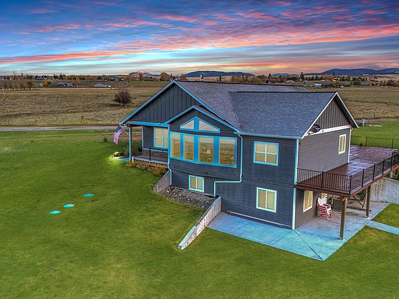 Nestled on 2 acres within scenic Stevensville, this 3,379 square foot home offers spacious living with phenomenal views of the Bitterroot Mountains. The main floor hosts three well-sized bedrooms, including the primary bedroom with an ensuite bathroom. Enjoy an open-concept layout with floor-to-ceiling windows in the living room, flooding the space with natural light and showcasing the beauty of the Bitterroot Mountains. The walk-out basement consists of two bonus rooms, a living area, a full bathroom, and large storage area. Step outside to a large deck and a sprawling backyard complete with a fire pit, ideal for relaxing and entertaining. This property includes BRID irrigation and is conveniently located just 15 minutes from Stevensville’s amenities. This home is the blend of serenity and accessibility. For more information or to schedule a showing please contact Nicole Jones at (406) 239-1421 or your real estate professional.