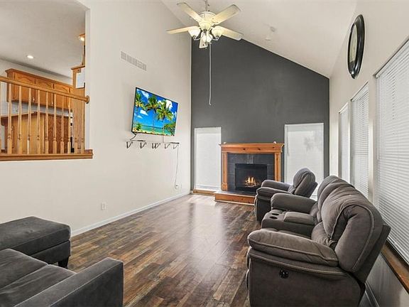PRICE IMPROVMENT* This move-in ready home features a bright living room with vaulted ceilings, a cozy fireplace, and an open kitchen with plenty of cabinet space and a center island. Enjoy meals in the dining area with access to the back deck, perfect for entertaining. The finished lower level offers extra living space, and the large backyard is great for outdoor fun. Conveniently located near schools, parks, shopping, and highways!