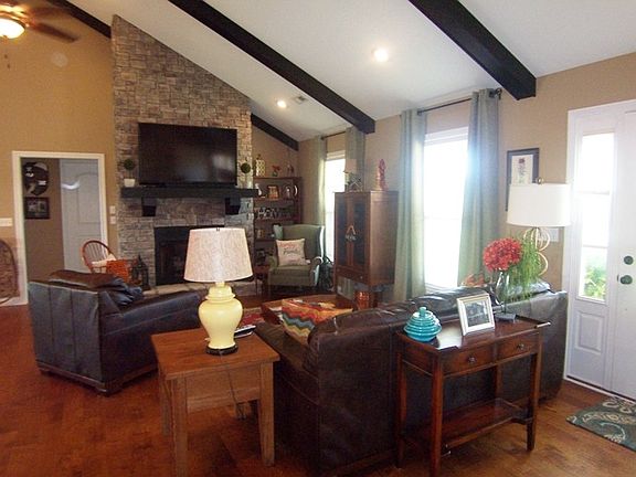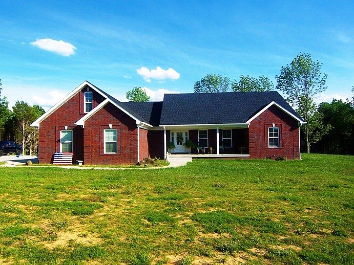 Custom built 3BR 2BA brick ranch w/ 2 car attached garage on 8.25 acres in Springfield. Highly desirable open concept split floor plan. Living Room with vaulted ceiling w/ exposed decorative beams, lovely hardwood floors, & stone fireplace. Kitchen has custom cabinets with glaze finish, stainless appliances & large center island/breakfast bar. Nice Eat in Dining area overlooks the covered patio area. Master suite with double vanity sinks, Jacuzzi tub, separate shower & tiled floors. Nice Laundry Room & 2 additional Bedrooms and full tiled Bath complete the main floor. Bonus room upstairs & covered back patio great for enjoying the scenic views & lots of wildlife. Call today for additional information or to schedule your personal tour of this great home!!