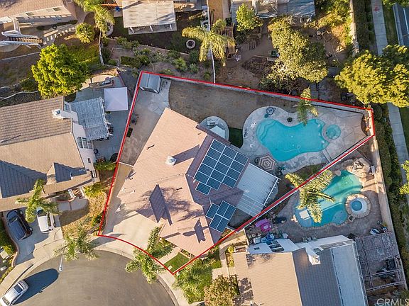 Magnificent POOL & SPA Home in South Corona, FULLY PAID SOLAR panels lets you run AC all day and night with minimal cost. New HVAC system. Quiet Cul-de-sac. Nicely landscaped artificial grass front yard with palm trees. Bright and cheery, with lots of windows. Cathedral ceiling and dual stairway to upstairs. Open floor plan with fireplace in family room. One of the bigger lots in the community. Walking distance to Santiago High School. Great play area and park for the enjoyment of kids and kids at heart. Great backyard with potential to customize. New Vinyl fence. Alexa enabled smart lock front door entry. Termite resistant Alumawood Patio shades and protects. Award winning Schools and shopping nearby. Central to everything.