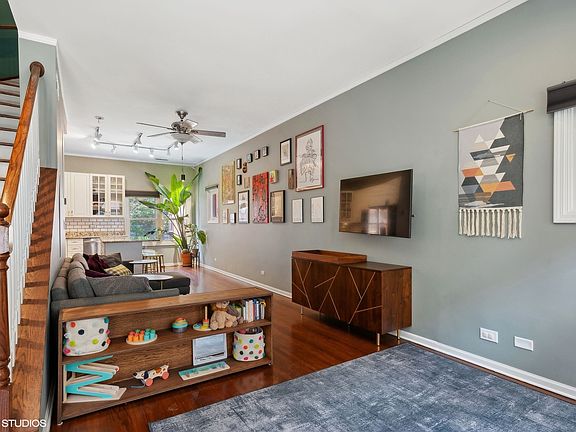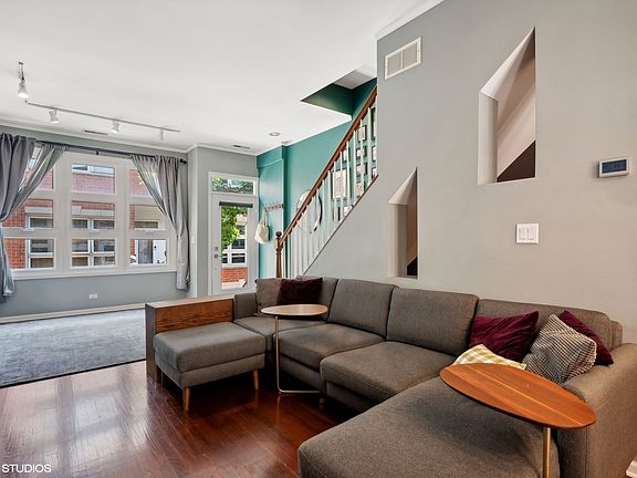Thoughtfully updated and rare. This 3-level three bedroom, three bath River West townhome is the perfect place to call home. The open-concept living space flows from the living room to the dining area and kitchen. The kitchen features granite countertops, stainless steel appliances, newer stove and refrigerator (2022), a large island with seating, and ample cabinet space for all your culinary needs. The separate dining area provides a perfect setting for entertaining guests. The primary bedroom features oversized windows, hardwood floors, two spacious closets, and a charming ensuite bath. The second bedroom, also generously sized, includes a large closet and is conveniently located next to the second full bath. The lower level offers a flexible space that can serve as a third bedroom or office, complete with a full bath, storage closet, and access to the lower outdoor area. Enjoy breathtaking skyline views from your private rooftop deck, perfect for relaxing or entertaining. This space also includes an interior landing for convenient storage during the winter months. Additional highlights of this home include a fully finished, heated 2-car garage with built-in storage and an epoxy floor completed in 2022, all new windows in 2023, a new water heater in 2023, and a refinished second bathroom. New roof completed this year. Located just minutes from public transportation, restaurants, grocery stores, the Chicago River, and the 94/90 expressway, this townhome offers easy access to all that downtown Chicago has to offer.