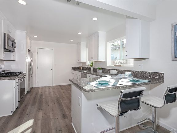 Expanded & custom remodel gated mid-century darling on corner lot. ALL NEW No need to look any further, this is it! Beautifully remodeled from top to bottom this mid-century home, on an interior residential, and fully gated, corner lot has it all. Flowing floor plan with formal living room, dining area, den and an office/4th bedroom that offers flex space. Spacious kitchen with all new custom cabinetry, custom counter tops, with matching hardware. Brand new stainless steel fridge, dishwasher, oven/stove & microwave. Beautiful natural laminate wood floors flow throughout the entire home and into the 3 spacious bedrooms, two with walk-in closets. Main bath has frameless glass shower with custom vanity and light fixtures. An additional half bath/power room has linen storage and custom hardware & fixtures. The master suite overlooks the rear yard, and features a walk-in closet and spacious master bath with soaking tub/shower, his & her sink vanity and custom hardware. All major components replaced all new including: roof, windows, flooring, interior/exterior paint, electrical, garage door and glass sliding doors. 2-car attached garage is finished and can easily be converted into an ADU. Drought resistant landscaping saves money on water. Large covered porch and roomy open rear patio means entertaining family & friends is a breeze.
