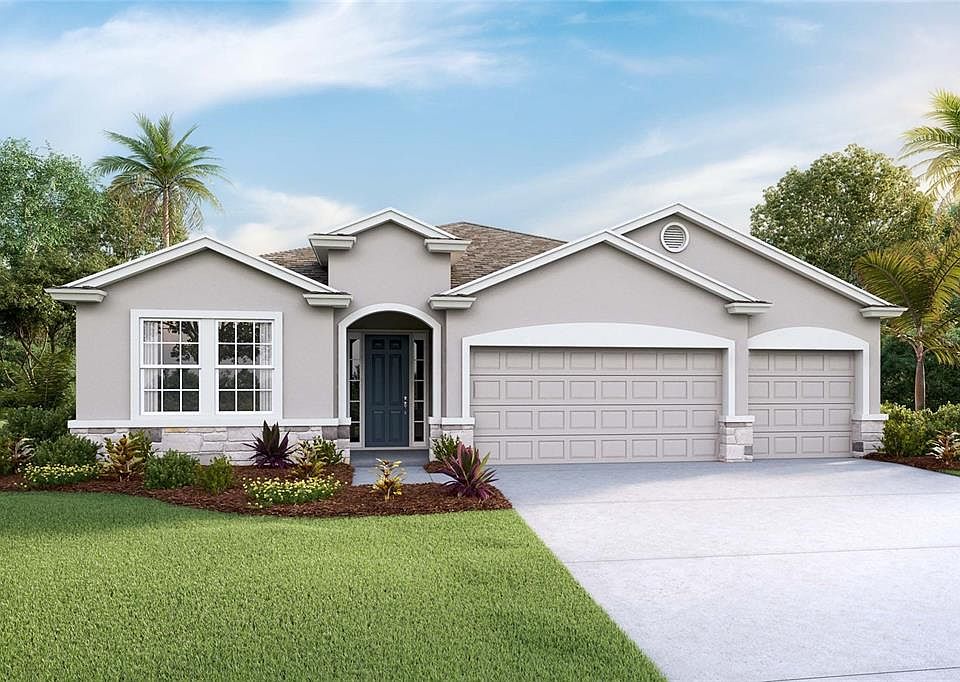 One or more photo(s) has been virtually staged. Under Construction. This one-story, all concrete block constructed home has a truly open concept plan, featuring a great room with dining space that flows into the kitchen and dinette. Two bedrooms at the front of the home share a full bathroom, while Bedroom 1 with an ensuite bath is located on the rear of the home for privacy, providing beautiful views of the backyard. The fourth bedroom next to the kitchen features its own ensuite bath and walk-in closet. This home includes an installed stainless-steel range, microwave, and dishwasher. Pictures, photographs, colors, features, and sizes are for illustration purposes only and will vary from the homes as built. Home and community information including pricing, included features, terms, availability, and amenities are subject to change and prior sale at any time without notice or obligation. CRC057592.