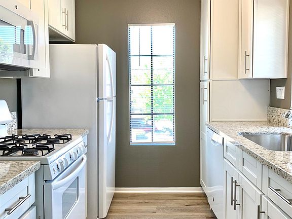 Ready for May 1st move in. Recently remodeled! Rare central A/C. Newer kitchen and baths with quartz countertops and new laminate floors throughout and laundry in unit. A must see! This corner unit allows light to flood in, has a great breeze, and has privacy from neighbors - best unit in the complex! Unobstructed view of the park from the balcony to see fireworks on 4th of July and Labor Day! Owner pays for trash and water.