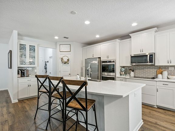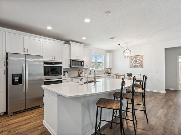 Welcome to this beautifully crafted 4-bedroom, 3-bath home located in the desirable Plummer Creek community. Built in 2019, this spacious 2,500 sq. ft. home boasts an inviting open floor plan that seamlessly connects the great room, dining area, and kitchen, perfect for modern living and entertaining. The gourmet kitchen is a chef's dream, featuring a large island, stunning quartz countertops, 42” upper cabinets, double oven and ample cabinet and counter space, complete with a cozy breakfast nook. Designed for privacy, the split bedroom layout offers laminate flooring throughout the living areas and plush carpeting in the bedrooms. The luxurious master suite is a true retreat, with French doors, his-and-her closets, a walk-in shower, a separate soaking tub, and dual vanities. Situated on a corner lot, the fully fenced backyard provides privacy and security, with a screened and covered patio ideal for outdoor relaxation. You will love the amenities in this community including large pool, playground and kayak launch site. Conveniently located near I-95, this home offers quick access to both Jacksonville and Georgia, and is just a 25-minute drive from the stunning beaches of Amelia Island. Don’t miss your chance to own this charming home in a prime location!