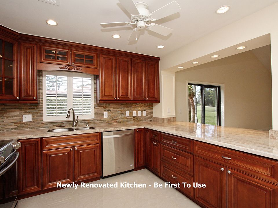 Total Redone 3 bedroom, 2 bath villa with golf view. Open kitchen totally reconstructed with Granite countertops, new cabinets, High-End Stainless Steel Appliances; Finished closets; enclosed florida room; beautiful landscaping and so much more. Best 'NEW' unit in Boca Lago.