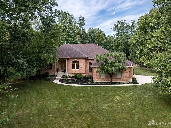 3.8 PRIVATE ACRES!! Nearly 5,300 finished sqft offered by this 4 bedroom ranch complete with a finished walkout basement! Front formal dining room and study located off the entry. Fully equipped kitchen with stainless steel appliances, granite countertops, and tile backsplash. Adjacent breakfast room with walkout access to the back patio. The spacious great room features a floor to ceiling stone fireplace surrounded by wall to wall builtins. The desirable main floor primary suite boasts a full private bath with double vanity, corner soaking tub, and walk in shower - plus a massive walk in closet! Two additional bedrooms, full hall bath, laundry room and half bath also on the first floor. Even more living space offered by the finished walkout basement!! Full wet bar equipped with a beverage fridge and dishwasher. Oversized family/rec room areas to suit any need! True fourth bedroom and third full bath plus an additional bonus room (currently used as a bedroom) and ample unfinished space. Enjoy the fully private backyard views from the expansive back patio. Fully tree lined lot! Convenient storage shed plus a built in firepit area. 3 car side entry garage. Recent updates include new roof and tankless water heater (4 years) and new AC (2 years). Rare opportunity to own several acres in Clearcreek Township! This home is a MUST SEE!