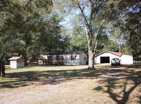 Opportunity awaits savvy buyer. Partially fenced 1 acre parcel close to Yulee Middle and High schools features manufactured home, 3-bay block shop/garage (60' x 45') and an additional storage building (25' x 15') directly behind the shop. Shop is fully fitted with benches, cabinets, lighting and it's own restroom. MH needs work but could be a rental or temporary home until your dream home is built. Property is ideally suited for small business owner or hobbyist who needs plenty of room to store and work on projects. Level parcel with great trees to enjoy for years to come.