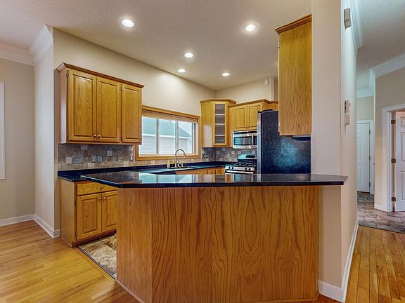 Rare detached town home w/3 car attached garage and finished lwr lvl w/tons of storage space. Enjoy main level living with spacious open 10 ft high ceilings and Lndry Rm. Numerous quality features include: plantation shutters on many main lvl windows, real hrdwd flrs + crown molding in Living/Dining Rms, raised panel oak cabnts w/grante cnter tops + stainless steel applcs in Kitchen, new quartz ctr tops in all 3 Bathrms, new carpet in min lvl Owners Suite + SunRoom, Main lvl Office + newer high eff furnace, etc. Huge lwr lvl Fam Rm w/gas fireplace, recessed lights + lookout windows along w/2nd and 3rd Bedrms and plenty of storage. Priv bckyrd w/underground irrigation system + mowing/snow removal done by association. Close to Zane Sports Park, Hy-Vee/restaurants/shopping and Hwy 610/94.