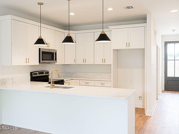 This home has a spacious open floor plan, perfectly designed for modern living, creating a seamless flow between the kitchen and living areas. The kitchen is a true highlight featuring dolomite countertops allowing you to prepare meals with pleasure in this modern and stylish space. Throughout the home, the wood laminate flooring is durable, low-maintenance, and perfect for a busy lifestyle. Custom, modern lighting fixtures and gold accents throughout the home elevate the ambiance. This home is situated on a private dead end street, providing a peaceful setting with Lafayette only a short 10-minute drive away. Schedule a viewing today!