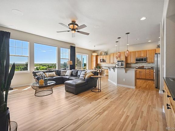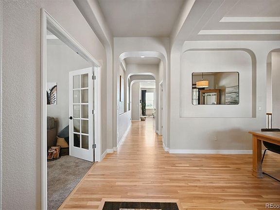 Beautiful and expansive walk-out ranch with sweeping lake, mountain, and city views! This home is located perfectly in the highly sought after Chatfield Farms perched on a cul-de-sac, backing to open space with a huge deck, with mature trees offering a lovely private yard for play and entertaining. Bright and light within with updates throughout, new flooring, newly remodeled bathrooms, new carpeting, paint in main living area and all the high end amenities along with main floor master, 10 ft ceilings, butler pantry, double ovens, wet bar, and swim spa included. This home has been loved, is well maintained, and offers Colorado living at its best with hiking trails, biking, boating and fishing within minutes to Waterton Canyon. A perfect space to relax and entertain, enjoy gorgeous views, and the space to expand inside and out.