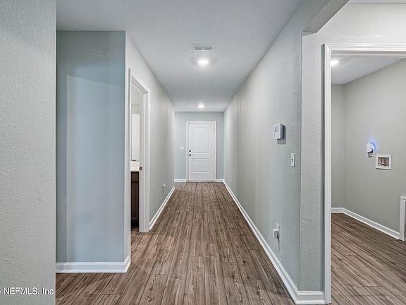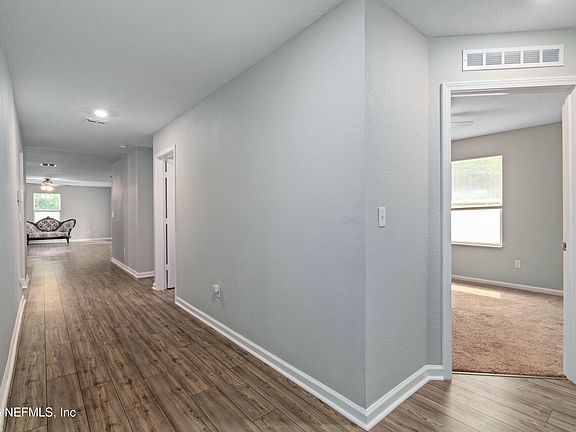 This cul-de-sac beauty also offers a sought-after split bedroom plan with numerous upgrades. The expansive yard is fully enclosed with a vinyl privacy fence, creating your own secluded haven. Nature enthusiasts will delight in the abundant birdlife. Notable features include upgraded French doors with with internal blinds, hardwired security cameras through SafeTouch Security, and lifetime gutters with leaf filters for low maintenance. With shopping and restaurants less than a 10-minute drive away and downtown Jacksonville just 30 minutes, you'll enjoy both tranquility and convenience in this exceptional home.