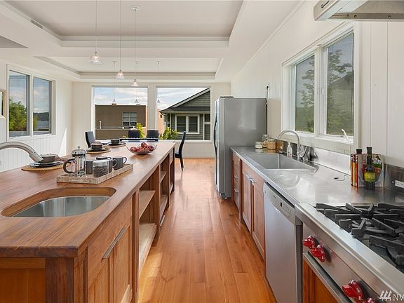 Views of Lake Washington and the Cascades from every angle of this home's vast entertaining spaces and luxurious master suite. Grand formal entry showcases the deck and open floor plan. Dining area well suited for a very large table. Kitchen has a state of the art range and enormous island with butcher block counter top. Also includes a dedicated media room. Fully appointed apartment on the lower level with separate entrance. Short walk to Magnuson Park, Burke Gilman Trail, and Matthews Beach.