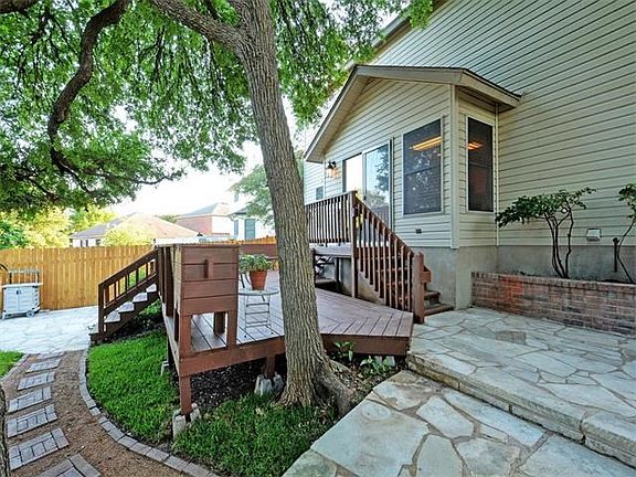 Large mature oak trees in front and back yard. Large deck for family gatherings and entertaining.