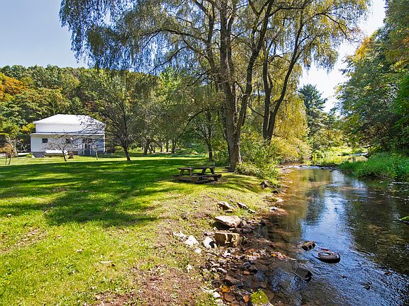 The home enjoys a truly exceptional setting, with evergreens, Japanese cherry trees, weeping willows, a grapevine, fruit trees and flower beds. The spacious yard has a stocked trout stream - Second Creek - running through the bottom of the property. A pond in the yard is fed by this stream. There's plenty of room for gardening, and lots of play space for privacy, entertaining and pets.