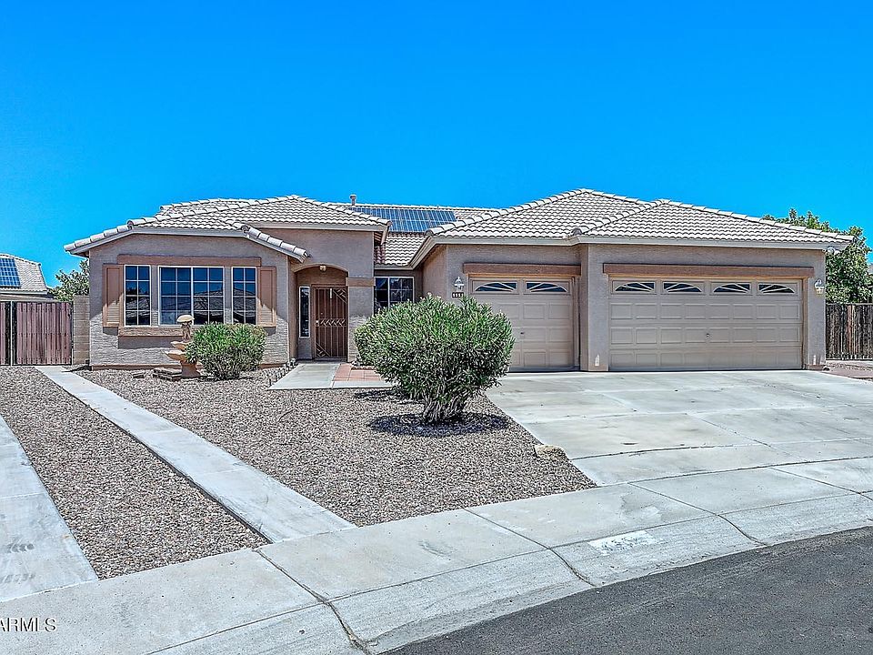 **BUYER FINANCING HELP AVAILABLE**Step into this freshly painted home featuring a spacious living and dining area that provides ample space for entertainment. The large kitchen boasts stainless steel appliances, a kitchen island, extended cabinetry, a breakfast nook, and opens to a huge family room with a cozy fireplace. The expansive primary suite offers a walk-in closet and a luxurious bath. Three additional bedrooms share a well-appointed bathroom. Outside, enjoy a perfect backyard oasis complete with a heated pool featuring a soothing waterfall. Situated on a huge lot ideal for entertaining or personal enjoyment, the property includes a gazebo and storage shed for added convenience. RV gate and ample parking space, plus a three-car garage and new AC unit
