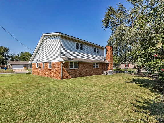 Well Maintained, Tasteful 2-Story Home on Huge Corner Lot in Convenient Tulsa Location! Tons of yard space with plenty of room for pets and play plus oversized patio with side entry garage. Light and bright tile Kitchen offers abundant counter space, stainless steel appliances, and white cabinetry with glass windows. Gorgeous easy maintenance flooring throughout,  2 Living Areas, one with brick fireplace and wall-to-wall brick hearth.  This home offers 2  Bedrooms down with a full bath and a convenient half bath by the kitchen.  There are 2 Bedrooms upstairs with a Full Bathroom, and plenty of attic space for storage- or could be built out! The perfect place to give your personal touch and call home! *JT