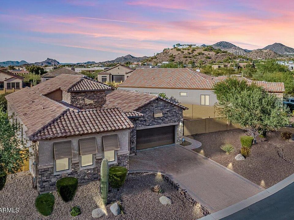 Fantastic opportunity to own this popular floorplan on an oversized lot in the Premier community of Mountain Bridge! Bright open plan w/split owner's suite. You'll love the sliding wall of glass, new quartz counters, new 5 burner stove, and the on trend finishes. Large owner's suite offers walk in shower, soaking tub, dual vanities & dual closets. 3 additional bedrooms w/attached bathrooms +a space that makes a nice office or a formal dining room. Beautiful low maintenance back yard offers sparkling pool, extended pavered patio, large side yard areas that would make great dog run, gardening area or kids play area. Well located! Nestled in the foothills of the Mesa Uplands. Enjoy hiking, biking, boating, paddle boarding. Easy access to loop 202! 25 min to Sky Harbor & Mesa Gateway airports