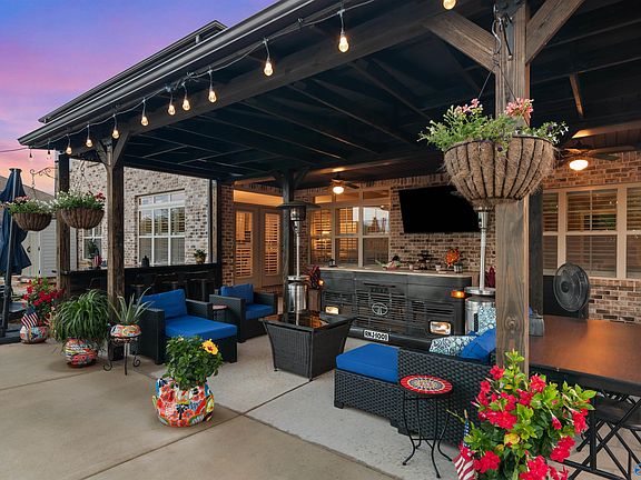 4.375 VA assumable!! Come see this luxurious home situated on a private lot, boasting breathtaking views just off the banks of the Flint River. This stunning property features exquisite woodwork, a gourmet kitchen with custom cabinetry and a grand island. The main level includes an elegant Owner's Suite, while the upper level offers 3 bedrooms, a generous rec room with projection screen, and a cozy loft area. Located in River Ridge subdivision, residents enjoy access to the Flint River and multiple scenic walking trails. This home is loaded with amenities, including a built-in wine rack, wet bar, upgraded window treatments, a smart heated fiberglass saltwater pool with attached hot tub.