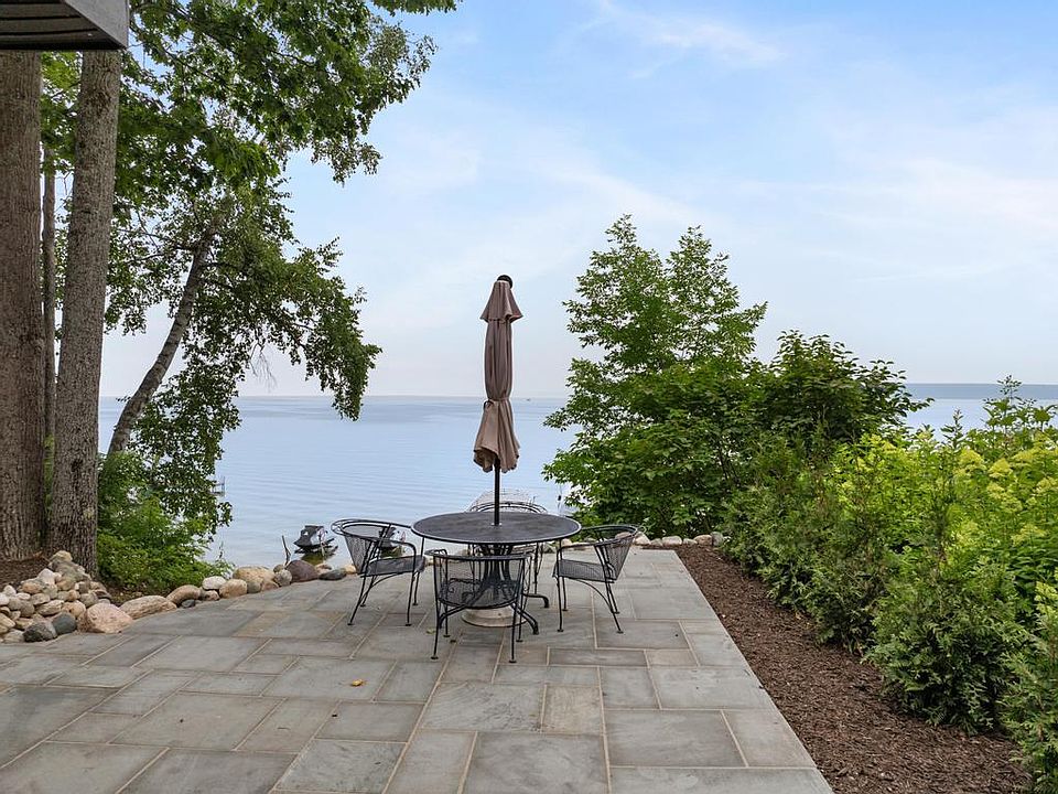 Recreational opportunitiesSense of privacyLakeside pavilionCustom stone stairsSandy shoresElegant granite countertopsExpansive kitchen