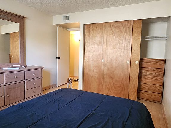 The room has a large closet, and medium / large window. The floors are hard wood laminate. The light switch operates one of the outlets as well. The unit is on the second floor, and we have quiet neighbors. Your bathroom is across the hall which includes a new toilet, clothing hooks and towel rack.