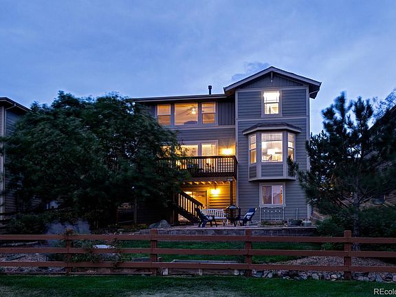 Views! Views! Views! unobstructed mountain, lake and valley views, backs to trails and park, formal model home, open floor, plan, light and bright, vaulted ceilings, new interior and exterior paint, new carpet, refinished hardwood floors, designer lighting, plumbing and hardware fixtures throughout, upgraded cabinetry, granite countertops, custom tile backsplash in kitchen and fireplace surround, crown molding, niches, includes all appliances, Nest thermostat, main floor bedroom (or study includes desk) with rare full bath on main floor, huge master bedroom with 5 piece bath and walk in closet, laundry room located on 2nd floor for easy access to all bedrooms, covered front patio, large back deck and patio, professionally landscaped with sprinkler and fence, new roof, basement has been framed and ready to be finished, 3 car attached garage, walk to parks, playgrounds, trails, shopping, restaurants, schools, Deer Creek, Chatfield, Roxborough Park, Arrowhead Golf Course, plus much more!