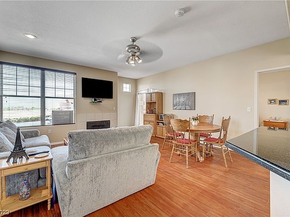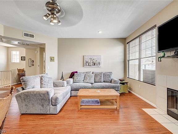 Great condo in awesome gated community in the SW! Strip view! Features include two primary bedrooms, open floor plan, beautiful laminate wood & tile flooring, ceiling fans throughout, kitchen granite counter and breakfast bar, new Refrigerator, new dishwasher, new vinyl flooring in kitchen, master bathroom, entry way; balcony connected to primary bedroom and living room; Gas fireplace, separate laundry room with extra storage, window coverings and pretty neutral paint, new A/C unit; attached garage, a lot of parking space. Just minutes to freeway, Convenient location close to shopping, restaurants, banks and tons of places for culture and entertainment