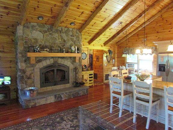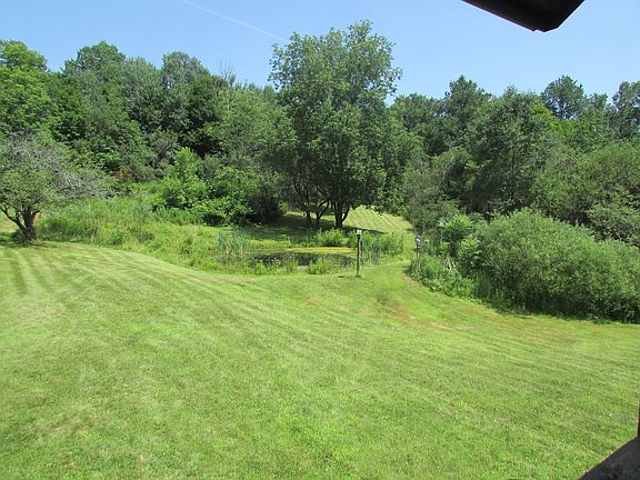 Price Reduced and Motivated Seller - Flush with rustic charm, this Custom built Log Home nestled in the rolling hills of Madison County could be the one you've been waiting for. Entertain friends and family in front of the extravagant stone fireplace, tell hunting stories with buddies around the island bar with granite counter tops or lounge on the full length deck over looking the spring-fed pond stocked with Brown trout. Complete with two-story 4 car garage. Just steps away from 13,000 acres of State Forest... offers total privacy and seclusion, trophy upstate hunting, horse trails, and snowmobiling. And only 10min to nearby Sherburne village. Less than 20 min drive to Colgate University in Hamilton. Meticulously cared for, this 13 yr old home features much more. - Cherry floors, cathedral ceilings, master bed/bath, first floor rec-room with bunk room and jacuzzi. 2nd full bath and stainless appliances.
