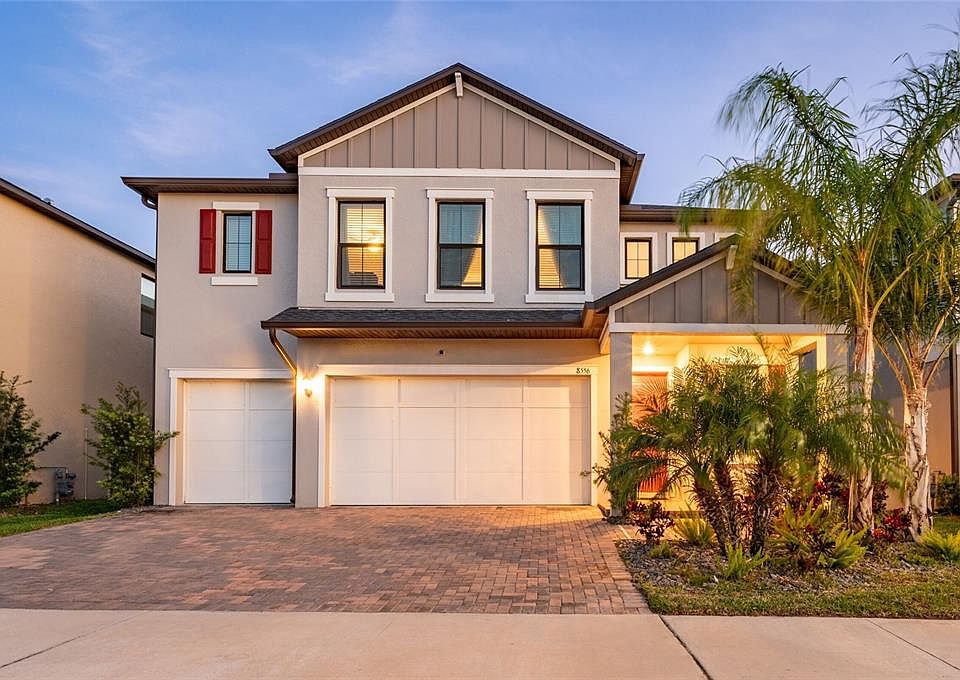 Nestled within the heart of convenience and scenic beauty, this exceptional two-story residence offers an unparalleled living experience. Spanning over 3,231 square feet under air, this 2021 showpiece is designed to cater to buyers with the most discerning tastes. Exquisitely built with rarely-seen and highly desirable upgrades, it’s a must-see! First great impression, and your gaze is immediately captured by its remarkable facade, enhanced by hurricane-impact doors and windows. The heart of this home beats within its elegant kitchen, where culinary dreams come alive amidst quartz countertops, a huge island, all stainless steel appliances, an exhaust vent hood, a gas range, a built-in oven & a microwave that will bring culinary art from any chef. The 42" white shaker cabinets paired with the adjacent butler's pantry featuring a wet bar adjacent to the kitchen underscore a setting of both elegance and functionality. With their captivating pool views, the crown-molded living room and casual dining area offer a seamless indoor and outdoor living blend. The great room is equipped with an electric fireplace, perfect for warming the family during cold nights or simply decorating the space, creating a pleasant mood and enhancing the luxurious atmosphere. Upstairs, an alluring rod-iron stair railing leads the way. Accommodation is nothing short of luxurious, with five bedrooms, including three ensuite bedrooms, one downstairs is perfect for your in-laws, providing privacy and comfort for family and guests alike. The primary suite is a sanctuary of its own, boasting state-of-the-art closet organizers, dual sinks, a free-standing soaking tub, and a large walk-in shower with a tempered glass enclosure, promising a spa-like experience every day. Entertainment seamlessly integrates into this home's essence, showcasing a large bonus room featuring a built-in wet bar and wine fridge, making movie nights and gatherings an absolute delight. The custom-designed screened pool with infinity spa is a visual spectacle, with a paver deck and an expansive lanai inviting you to endless days of relaxation under the sun or stars. Location is vital, and this home is perfectly positioned to offer the best of both worlds - tranquility and convenience. Daily errands and leisure activities are a breeze, just a 5-minute drive to Bryant Square, grocery stores (Sprouts Farmer, Publix, Walmart, and Target), specialty stores, prestigious golf courses, local and chain restaurants, and the YMCA. The weekends are covered too! Enjoy the allure of Tarpon Springs and the tranquility of the beach, which are just 20 and 30 minutes away, offering a perfect escape for weekends filled with adventure or relaxation. This property is more than a place to live; it's a lifestyle, a sanctuary where every detail is thoughtfully crafted, offering moments to embrace the joys of life entirely. Whether hosting memorable gatherings, enjoying serene sunsets by the pool, or reveling in the luxury of its interiors, this home delivers an unparalleled living experience, awaiting your signature to make it uniquely yours.