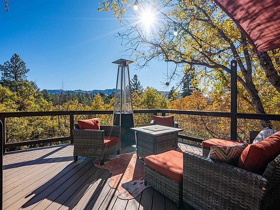 Welcome to a home where Colorado’s natural beauty and refined mountain design come together in perfect harmony. Every detail of this residence complements its breathtaking surroundings, such as mature pines, graceful gamble oaks, and panoramic views, creating a tranquil retreat that feels worlds away yet sits just minutes from town. Located in one of Durango’s most sought-after communities all while keeping you close to the vibrant culture and outdoor adventure Durango is known for. This home has kept the true feel of mountain attitude and features vaulted, open-beam ceilings, a framed picture window view out of every room, with updated rustic charm and perfect functionality. The great room is centered around a stunning two-sided stone fireplace that creates a warm ambiance for both the cozy den and expansive living room. The updated kitchen has a window above the sink, stainless appliances, granite countertops, a walk-in pantry, and a sunny breakfast nook, perfect for enjoying your morning coffee. The formal dining room is ideal for entertaining guests. Step outside to the large deck patio where you can savor the fresh pine-scented air and expand your living space into the outdoors and ideal for gatherings or quiet evenings under the stars. The versatile layout includes multiple areas to gather and even a generous loft with open beams, built-in bookshelves, tongue-and-groove ceilings, and a designated office area with large gabled windows overlooking the living space below (could make a great bunk room for guests if an office isn’t needed). The private primary suite includes dual closets, a private balcony, an en-suite bath with double sinks and a floor-to-ceiling tiled shower. On the lower level, the den currently offers a media room but can serve as a home gym or guest retreat, complete with a nearby bathroom. With guests or family, a functional laundry room is key—and this one is perfect! Two additional bedrooms adjacent to the den provide excellent guest accommodations or a great family hangout space. After a day of skiing, hiking, or biking in the nearby San Juan National Forest, unwind in the oversized jetted tub in the home’s second full bath. Additional features include an attached garage, practical storage throughout, and thoughtful design elements for easy Colorado living. Residents of Falls Creek Ranch HOA enjoy exclusive access to over 800 acres of private community land, a private lake with paddleboarding, kayaking, and a swim beach; tennis and pickleball courts; and equestrian stables where residents can board their equine partners. Miles of hiking and biking trails, a community egg program, and a full-time on-site caretaker ensure the neighborhood remains impeccably maintained year-round. Wildlife abounds, and starry nights are a regular delight in this low-light-pollution environment. Whether you're looking for a full-time residence, a second home, or an investment in the Colorado lifestyle, this is your opportunity to own a slice of mountain paradise in one of Durango’s most sought-after communities. This lot is special compared to others in the area because it backs directly to the forest,so you have no backyard neighbors! This is truly a show-stopping home that still keeps that Colorado charm nd one you do not want to miss! The drive to this property itself will take your breath and stress away, soaking in the cliffs, valleys, and ranges.. Do not scroll past this home, it’s one you truly do not want to miss.