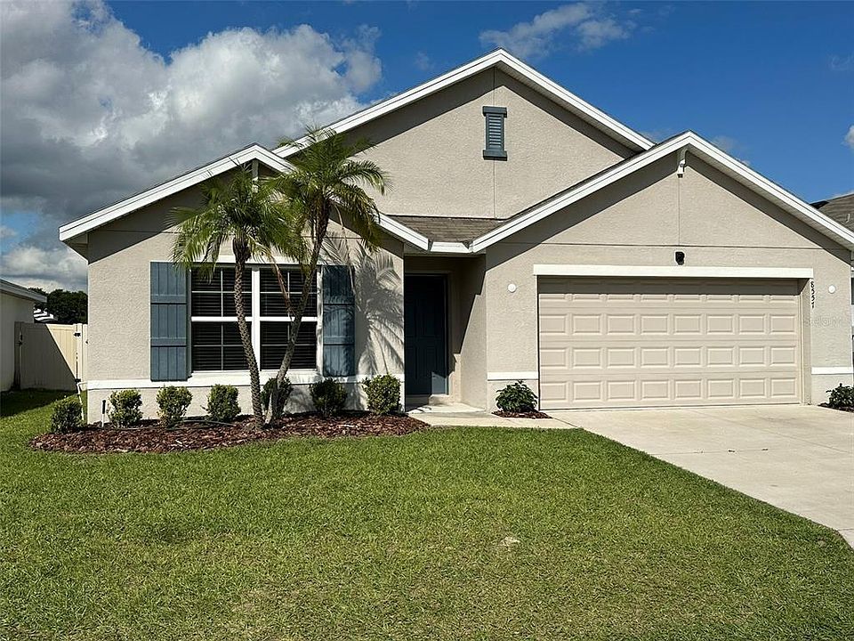 BETTER THAN NEW! Welcome home to this smartly designed 4-bedroom, 2-bathroom home. Built in 2021. Enjoy the open-concept floor plan, designed to maximize space. The kitchen, which features granite countertops, stainless steel appliances, a large island with a built-in sink, and a pantry. This is the perfect floorplan for entertaining. Large windows provide light and bright living. You will enjoy the convenience of keyless entry. The Primary suite, complete with a private ensuite bathroom and dual walk-in closets provide ample space. Three additional bedrooms provide flexibility for a growing family or home office. The inside laundry room is a convenient feature too. Step outside and enjoy the quiet backyard. Completely fenced with no rear neighbors. Located adjacent to The Villages, you will enjoy shopping, dining, and entertainment. NO AGE RESTRICTIONS IN THIS COMMUNITY. Located near the Florida Turnpike and Interstate 75 will make visiting Tampa or Orlando a breeze. There are no CDD fees on this property. This move-in-ready home is ready for you. See one of the best values in Wildwood!