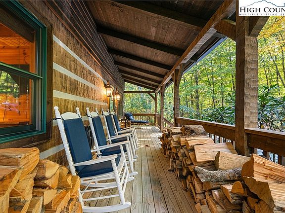 If you have been searching for a dreamy log cabin in the Blue Ridge Mountains, look no further! Nestled among the trees in the peaceful community of Lost Creek, located between Blowing Rock and Linville. This secluded yet easily accessible gated community is just an 18 minute gorgeous drive (mostly via the Blue Ridge Parkway if you desire) from Blowing Rock and 10 minutes to Grandfather Mountain, and provides privacy and serenity and close proximity to world class hiking, climbing, mountain biking, and all the other outdoor adventures offered by the Pisgah National Forest and the NC High Country. This idyllic mountain cabin features 2 bedrooms and 2 baths with an open floor plan featuring vaulted ceilings and a stunning floor to ceiling stacked stone wood burning fireplace, setting the scene for magical evenings by the fire. Step outside to enjoy the soothing sounds of a nearby creek or unwind in the hot tub while soaking in breathtaking natural scenery that surrounds you. The main level hosts a spacious bedroom with an ensuite bath, walk-in shower, and a luxurious soaking tub, ideal for relaxation after a day of adventure. Upstairs you will find a large versatile loft with expansive picture windows, currently set up as a game room and also featuring a queen bed for bonus overnight guests. The beautiful 2nd bedroom offers soaring vaulted ceilings and a gorgeous en suite bathroom. Meticulously maintained, the cabin features an updated roof, kitchen, bathrooms, HVAC, and appliances (2019-2021). Being offered fully furnished minus dishes, kitchenware, towels, linens, and the leather chair, this nearly turn-key property would be wonderful as a vacation home and is in a neighborhood that allows short term rentals, it could make for an excellent rental investment opportunity. Discover your mountain getaway where outdoor adventure and tranquil relaxation seamlessly combine for the mountain lifestyle you have been dreaming of.