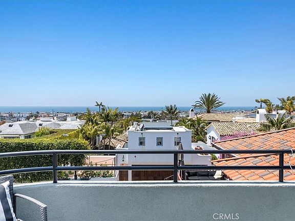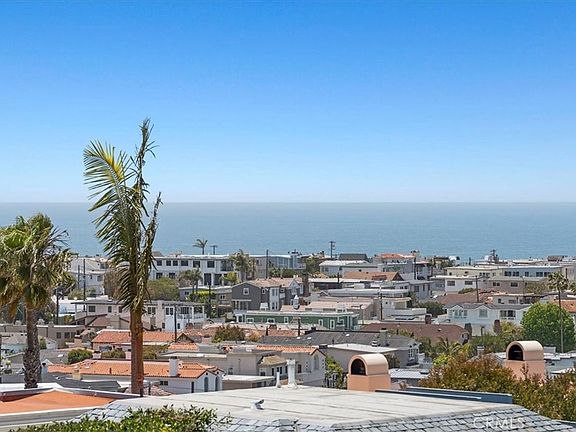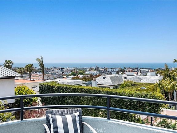 This three-bedroom, four-bathroom, 4400 square-foot Marshall Lewis home boasts a perfect blend of Mid-century modern and contemporary architectural features, providing character and unique design touches throughout. Tall, vaulted ceilings lined with rich redwood paneling give off an iconic beachy vibe while the bright white walls, gray marble, and unique architectural features make the space feel clean and cool. There’s not a square inch of cookie cutter, from the ultra-private front facade to the visually interesting, layered backyard. Enjoy ocean views from large outdoor terraces and through large picture windows throughout the homes’ multiple levels. The entryway leads to a formal dining room and the heart of the home - the kitchen. Beyond, a small sitting room and banquette-style breakfast nook add charm and extra living space. Down a half-set of stairs, a massive family room awaits, featuring a sunken couch, fireplace, outdoor access, min wet bar, and two-story-high vaulted ceilings filled with natural light. The backyard is ready to entertain, with a small pool, ample patio space, 1400-bottle wine cellar, and an outdoor bathroom for convenience. Up the main stairway, a loft on the landing offers private space perfect for working from home or grabbing a quiet moment. Upstairs, the Primary Bedroom’s cathedral-like ceilings and clerestory windows bring a sense of grandeur and endless space. The additional sitting area with a marble fireplace and a large terrace makes this Owner’s Suite a truly sweet escape. The en suite bathroom is a circular oasis with a luxurious soaking tub, expansive shower, and semi-circular double vanity offering unrivaled countertop real estate. Ascend farther and find another bedroom that feels like the top of a treehouse, with a terrace, big picture windows, and an en suite bathroom. Located in the desirable Hill Section, this home is close to top-rated schools, the beach, and Downtown Manhattan Beach, offering a perfect blend of luxury and convenience. Don't miss the opportunity to make this stunning property your own and experience the best of California coastal living!