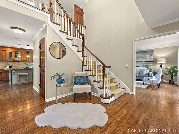This stunning, executive style Brighton Ridge home IS the new Naperville home you've been dreaming of! Step in to your 2-story foyer featuring gleaming hardwood flooring and 2 closets, flanked by the perfect 1st floor bedroom or office. Entertaining is such a breeze here with the large formal living room and elegant dining room connected, they can accommodate the largest gatherings! The exceptional kitchen has been so beautifully remodeled with custom details and maple cabinetry. Stainless appliances, stainless vented hood over the stove and a hidden microwave is tucked away in the island. Gorgeous granite counters, pendant lighting, Incredible amounts of pantry space and a separate built-in serving buffet/coffee station is featured in the eating space. An open kitchen to family room layout is on everyone's wish list and you will be wowed by the incredible wide open family room! Sun beams in through the skylights of this room with soaring vaulted ceiling, spiral staircase to the massive loft, and bookshelves framing the 2-story brick fireplace. The bay window overlooks the private back yard and gazebo. The light and bright powder room has undergone a complete remodel last year! The laundry room boasts maple cabinets, granite counters with inset utility sink, stackable washer and dryer, tons of storage and this space conveniently connects right to the huge 3-car side load garage. Up the sweeping front staircase you will find your dreamy primary suite with an elevated ceiling, excellent closet space, and even an adorable attached bonus space overlooking the foyer. The primary bath is a sunny vaulted space with a separate shower, deep jacuzzi tub and 2 separate vanities. On the opposite end of the hallway, the massive open loft overlooking the family room has endless options for art space/play room/office space, etc.! The large bedroom next to the loft is a spacious retreat with a huge walk-in closet and additional walk-in attic storage. The additional bedrooms are spacious with great closet space and ceiling fans. The guest bathroom has just been completely remodeled and is absolutely gorgeous with dual sink quartz topped vanity, ceramic tile floor, and a full linen closet. There is a huge unfinished basement waiting for all of your storage needs or ready for your fantastic finishing ideas. With no crawlspace, it is a wide open area! The excellence of this property continues as you step out back onto the 2-tiered deck and notice the cozy screened in gazebo - perfect for enjoying bug-free evenings! Lush landscaping including peach and apple trees! Enjoy maintenance-free lawn watering with the in ground sprinkler system! A beautiful stone path is behind the gazebo, a garden space in the far corner, tons of green grass space and a fully fenced in yard round out this amazing back yard. Springbrook Prairie is literally steps away from your new home - featuring over 1,800 acres of walking/biking trails, an off leash dog area, and a model aircraft area! Also walkable to the Brighton Ridge neighborhood park right down the street. Starbucks, restaurants and grocery shopping are also walkable! Centrally located, right off 75th and Naperville Blvd, you are within 10 minutes of the train station and everything downtown Naperville has to offer! If you are looking for an exceptional, updated home, you have found it! Check out this list of updates, literally nothing do to here but move in! 2025 - NEWLY remodeled upstairs guest bath, NEW dishwasher. 2024 - NEWLY remodeled powder room. 2022 - NEW driveway with shaved curb. 2021 - NEW windows throughout! 2020 - NEW Furnace, NEW AC, NEW Hardwood floors on 1st level ( with exception of kitchen) NEW carpet. 2019 - NEW ROOF