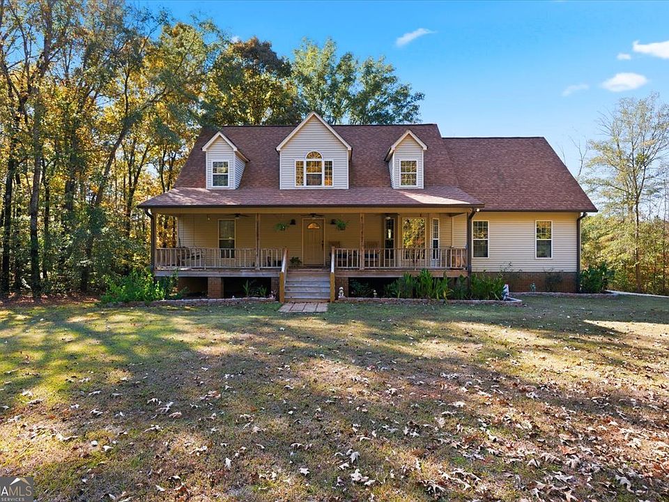 Beautiful two-story home on 11+ peaceful acres! This 5-bedroom, 3.5-bath home features over 2,400 sq ft plus a 1,100 sq ft finished basement. The kitchen offers granite countertops, plenty of cabinet space, and an open layout perfect for entertaining. The owner's suite includes a large soaking tub and walk-in closet. Upstairs has a huge bonus room for a playroom, office, or extra living area. Enjoy the covered front and back porches with views of the countryside. The finished basement includes a bedroom, full bath, and additional living space-great for guests or a media room. Outside features a fenced pasture, pole barn, and a heated/cooled 'she shed.' Peaceful setting with room to roam-additional 5 acres available for purchase!