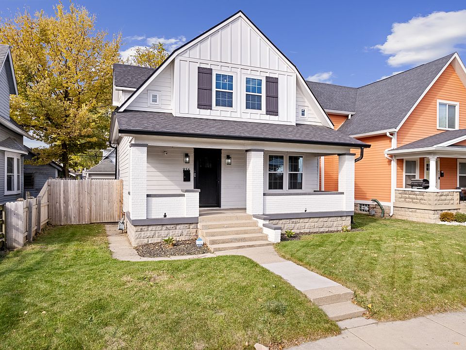 Extensively renovated in 2021, this Modern Farmhouse in Saint Clair Place is near great restaurants, Mass Ave, and the Factory Arts District! High quality kitchen and bathroom designs, LVP and custom tile flooring, stainless steel kitchen appliances, plus washer & dryer included. Treasures throughout this home include exposed brick chimneys, shiplap accents, a secret hidden door, Bluetooth speaker exhaust fans, and sensor closet lights. Updated roof, gutters, upgraded siding, wood deck, privacy fence, windows, doors, HVAC, ductwork, plumbing, electrical, drywall, trim, water softener, and security system. The unfinished basement provides additional storage space. Scoop up this great deal today!