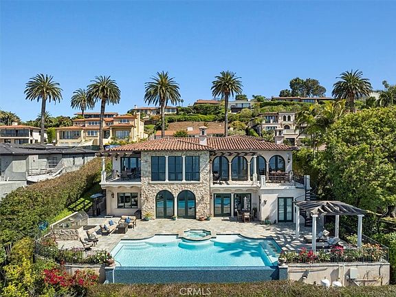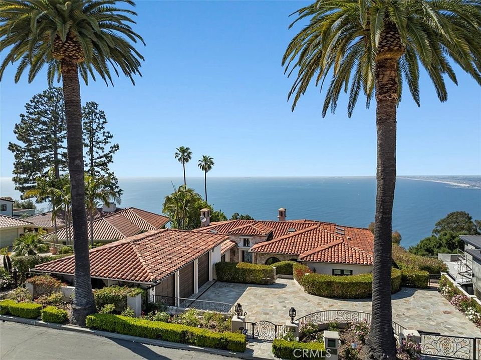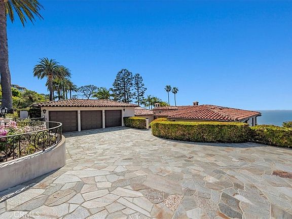Live on top of the world while looking over the iconic Los Angeles Coastline! This custom built Tuscan Villa has 4 bedrooms plus office, 5.5 baths and offers one of the most stunning Queen's Necklace and sunset views on the Palos Verdes Peninsula. As you step into the formal entryway you are welcomed with breathtaking ocean views, high ceilings, and an open floor plan that flows effortlessly through the grand living room, dining room, family room, and kitchen. The large gourmet kitchen is perfect for entertaining and features two large islands, Viking appliances consisting of three ovens, a built-in Microwave, two Dishwashers, warming / chilling drawers, a Subzero refrigerator and freezer, and a Miele espresso maker. Enjoy sweeping ocean and city views from all living spaces and balconies off the formal living room and breakfast areas. The luxurious and spacious primary suite has incredible views with a huge en-suite complete with a large shower, separate steam room, dual walk-in closets, double sinks, and a spa tub. The game room / family room below overlooks the entire bay and leads to the pool and backyard through massive french doors. The backyard is an entertainer's dream and features a resort-like infinity edge pool with hot tub, an outdoor kitchen with Viking stainless steel appliances, and multiple observation areas to enjoy the extraordinary views. Other amenities include an 800-bottle capacity wine cellar, an elevator, hardwood and natural stone flooring throughout, a built-in bar including Viking refrigerator and ice-maker, multiple custom stone fireplaces, heating and air conditioning systems, and massive indoor storage for decorations and equipment. The enlarged 3 car garage with epoxy floors is perfect to store classic or luxury cars with the privacy of an electric gate in front of the spacious driveway. This resort-like home is situated mid block on a cul-de-sac street and offers a World of Paradise!