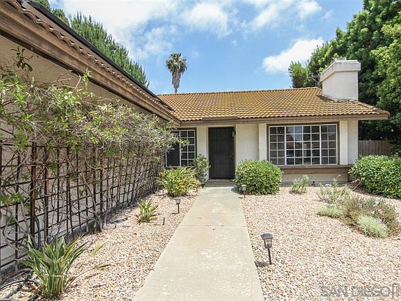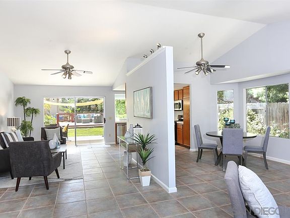 This charming single story home has soaring vaulted ceilings, an over-sized master suite. Gorgeous private & quiet park-like backyard filled with palm & mature fruit trees. Perfect for entertaining on the large deck. Low maintenance front yard with a dry creek bed & end of cul-de-sac location. Natural light & daily ocean breezes, the open floor plan, & easy tile floors make this home is a great place to come home to at the end of the day. Has both tankless & standard H2O heaters with recirculating pump.