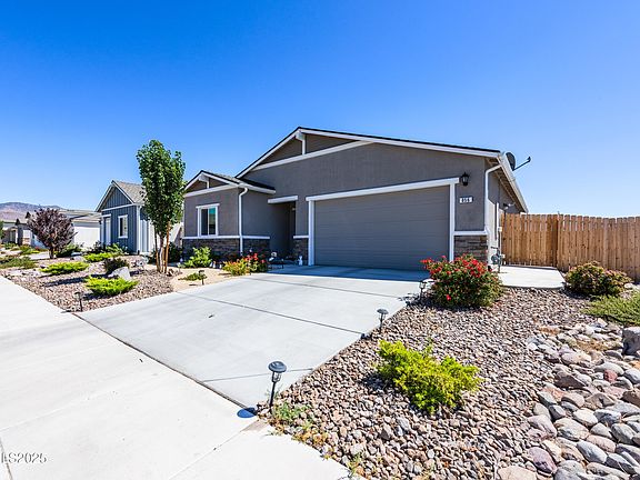 Don't wait for new construction, this beautiful 2023 built home is move-in-ready today! Featuring an open concept design, it seamlessly blends luxury and elegance with custom finishes throughout. Highlights include luxury vinyl plank flooring, upgraded carpet, nine-foot ceilings, sleek quartz and piedrafina stone countertops, stainless steel appliances, and so much more! This meticulously maintained home also offers a fully landscaped front and backyard, plus a large storage shed. Enjoy peace of mind with the remainder of a transferrable 10-year limited builder warranty! Perfectly located for commuters with easy access to Virginia City, Reno, Lake Tahoe, and the Reno-Tahoe International Airport. Come experience modern living at its finest, schedule your private showing today!