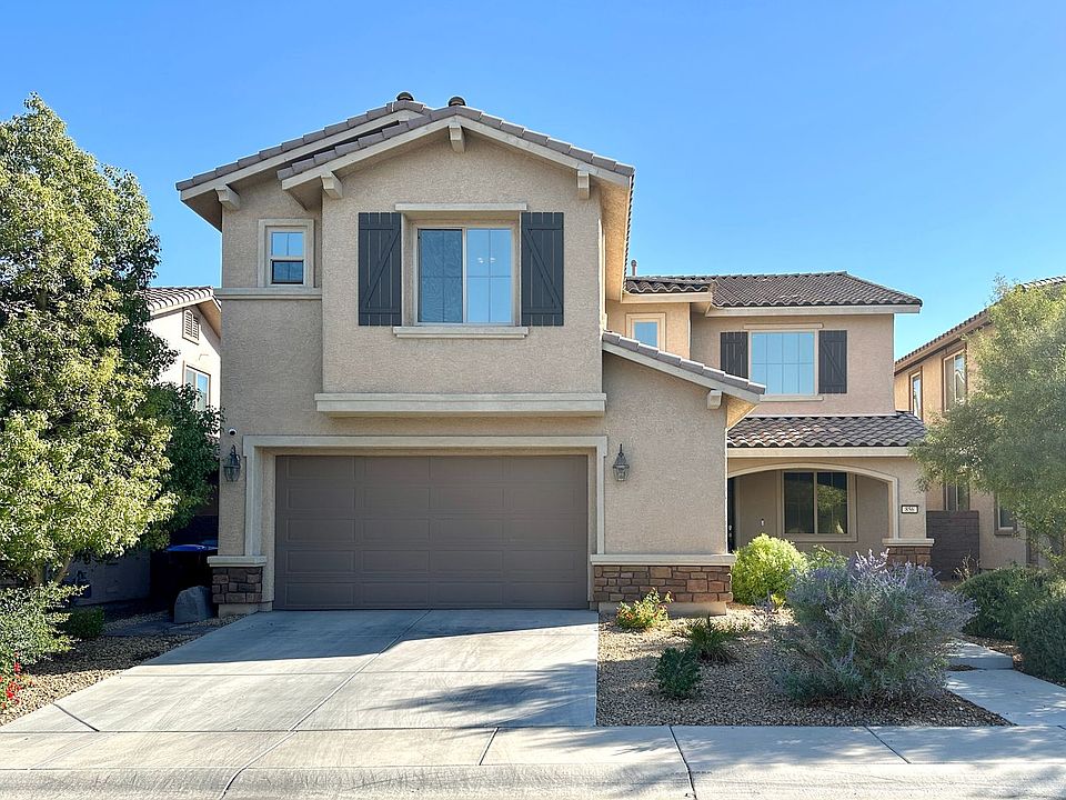 Beautiful 2-story, 4-bedroom, 3-bathroom home in Henderson featuring a convenient downstairs bedroom and 3/4 bath. Enjoy ceiling fans in every room and a spacious kitchen with double islands. Tile flooring runs throughout the downstairs, with carpet in the bedrooms and vinyl on the upper level. The home also includes a loft and an upstairs patio. Community amenities include a pool, basketball court, and playground. Price includes $25 for trash.