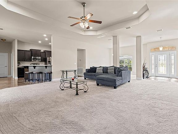 ***OPEN HOUSE, SAT., NOV. 15TH, 12-2.***USDA APPROVED AREA. You will love the open floor plan with 3 full baths and 4 bedrooms. It has a large covered rear porch with Both the Primary and Great rooms have beautiful trey ceilings. The Kitchen has recessed lighting, a pantry, stainless steel appliances, beautiful all wood cabinets and a hop-up bar overlooking the breakfast nook and Great room. The spacious master bath has 2 walk-in closets, two vanities, garden tub and separate walk-in shower. The Great room has a stunning woodburning fireplace complete with a gas starter. Schedule your appointment today. Buyer responsible for verifying all measurements and relevant details.