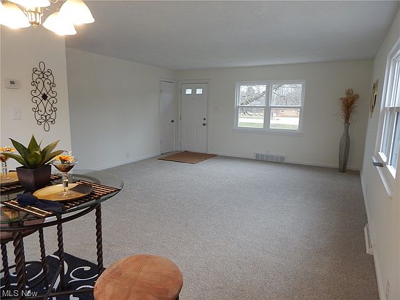 Bursting with upgrades this Open concept Ranch with one floor living, has a seamless floorplan. Step into the remodeled Kitchen boasting new Ceramic floors & Backsplash & be the 1st to use the 4 new SS appliances! Enjoy the abundance of light coming into the Dining/Living Rms with 3 double sets of new Windows enhanced with neutral plush carpeting & fresh paint. And there's room for that Big Screen TV too! All new interior doors lead to a total NEW bath, down to studs! Tub & Surround, Vanity, fixtures, new Ceramic floor are Spectacular! All 3 well closeted Bedrooms enjoy new lights, carpeting & paint. Waterproofed Basement awaits your finishes, serviced Furnace & A/C just 12 years old, Updated Electrical Panel, glass Block, Major capital Improvements of new Vinyl Siding & Insulation 23, Many Windows 23, New Roof, Ice-guard, Gutters & Soffits 22, Brand New Hot water tank 4/23. Oversized 2/3 car Garage built in '94 is 672 square feet (28x24) new Garage Door, Siding & Roof 23. Freshly sta
