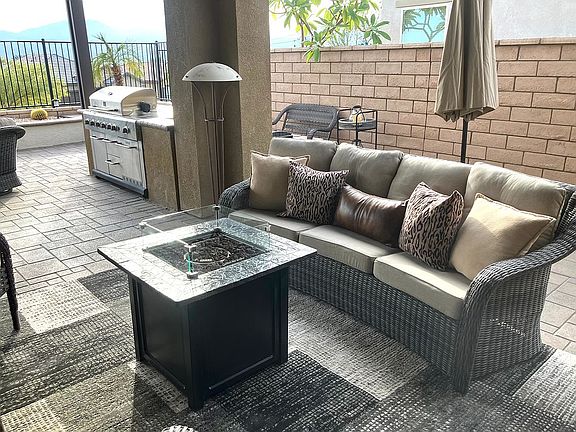 Premium view lotQuartz countertopsOutdoor kitchenExpansive outdoor livingFire pit