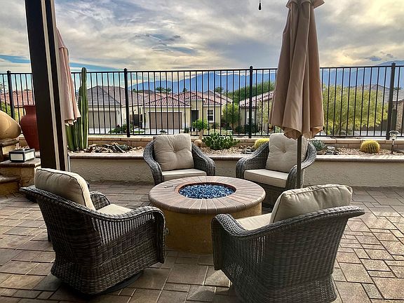 Spectacular home on premium view lot. Over $200,000 spent to make this home unique; not a builder spec! Custom throughout with dozens of upgrades; flooring, quartz countertops, lighting, appliances plus expansive outdoor living. Enjoy the pool, spa, outdoor kitchen, fire pit, and more. 55+ community with guard gate, multiple pools, tennis/pickle ball courts, clubhouse - everything for resort living.