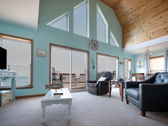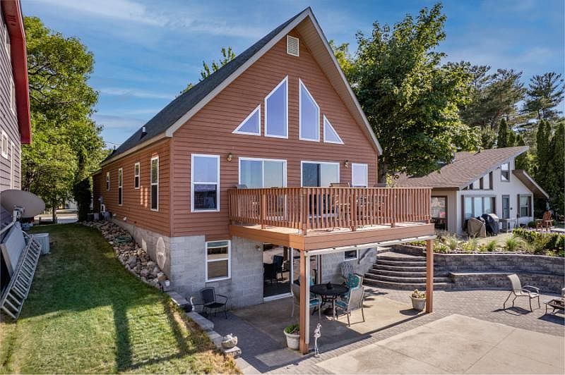 This amazing north shore lakefront chalet is a MUST SEE! Complete with 3 bedrooms and 4 full baths, this home is an extraordinary find! It is rare to find a home with both sunrise and sunset views, but this home has that and much more! Currently used as a cottage, but ready for year-round living with amazing views, this home is the perfect paradise! As you enter you are greeted by floor to ceiling windows and beautiful knotty pine cathedral ceiling, giving the home an open, airy feel! The kitchen has an updated backsplash, island and breakfast bar, and the comfortable living room and dining area provide panoramic views of Saginaw Bay and provide a wonderful space to entertain! Double sliding doors allow for natural light and lead you on the balcony, perfect for indoor/outdoor living! On the main level, you will also find a master bedroom with large walk-in closet and en suite, as well as a second bedroom and second full bathroom. As you make your way upstairs to the loft, you are sure to love this private master quarters. Enjoy the open and comfortable sitting area while watching the wildlife and boats pass by. Walk through the French doors into the large master bedroom with beautiful lake views, his and her closets and an en suite. As you make your way downstairs, you will be pleasantly surprised by the well-lit walkout basement with additional entertaining space! This space has endless possibilities with a built-in wet bar, dining area, and rec space. You could even consider carving out another bedroom! A fourth full bath is perfect for when you come in from the lake! Lots of storage throughout this home for your extras and a large laundry area. This home has an attached one car garage and storage shed! If the indoor space isn't enough, you are sure to enjoy the new professional landscaping with paver walkways, new driveway, covered patio and fire pit area with tiered seating. A roadside patio is perfect for grilling and will come in handy on those windy nights! Additionally, the property features a unique double sea wall, with water-level concrete patio all to sit and relax and enjoy the beautiful north shore! This home had beach prior to the water level increases, so expect sandy beach within the next few summers! Call today for your private showing.