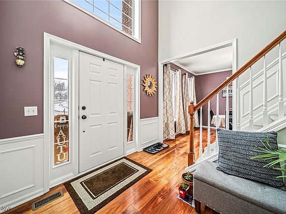 Brick Colonial located in the desirable Eaton Estates with many amenities including swimming pool, walking trails, playground and tennis court. You will be welcomed by a grand two-story foyer with wainscoting, chandelier, hardwood floors and entrances to the formal dining room and an additional (anything you want it to be room) with French doors. Spacious kitchen with a center island and opens to the main living area with a cozy gas fireplace. Second level includes Four bedrooms and two full bathrooms. Primary bedroom and the Living room feature vaulted ceilings. Outdoor rear brick patio off the eat in kitchen for your outdoor enjoyment. Convenient first floor laundry room. Large master suite with vaulted ceiling. Finished lower level with plenty of storage and built in shelves. Roof- 2021, furnace-2022, & hot water tank-2020.The primary bathroom is calming with updated double vanity counters, soaking tub, separate stand-up shower, and a walk-in closet. Entire home Interior Professionally Painted–with premium Benjamin Moore Regal® Select Interior Paint. New Plush Carpeting–Installed throughout the home. Fully Remodeled Kitchen Flooring–Upgraded with durable, luxury vinyl plank. Brand New GE 30-Inch 5-Burner Free-Standing Gas Range–Features Easy Wash technology and No Preheat Air Fryer. Brand New GE 1.6 Cu. Ft. Over-the-Range Microwave–Stylish stainless-steel Cooking Controls. Brand New Samsung Washer–4.5 cu. ft. Front Load model with Vibration Reduction Technology. Brand New Samsung Dryer–7.5 cu. ft. Electric model featuring Sensor Dry for efficiency and convenience. New Window Screens–Added to every window. Completely Updated Bathrooms–Featuring Kohler commodes, new faucets, sinks, mirrors, showerheads, shower rods, and modern light fixtures. New Ceiling Fans with Integrated LED Lighting–Energy efficient installed in every room for enhanced comfort and illumination. Upgraded Door Hardware–throughout. All-New Curtain Rods and Heating Vents throughout the home.