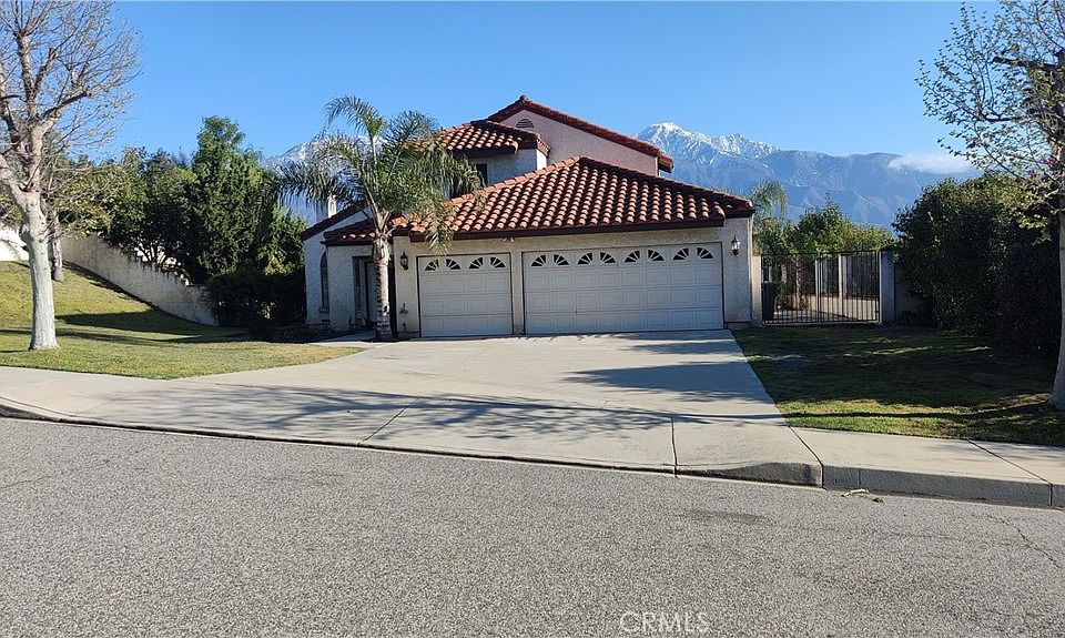 Red Hill family home with spectacular unobstructed mountain views. From the moment you pull onto the street you can tell that these homes are special. The orientation on the lots, the grade of the street and the elevation of the neighborhood make for great views in the coveted Red Hill area of Rancho Cucamonga. Enjoy those views from the huge private backyard with plenty of park like grounds, sitting areas, mature trees/landscaping complete with an inground pool. Over a quarter acre lot size gave plenty of room for lush inviting landscape. You can tell that these original owners always enjoyed caring for their home and gardens. 2-story home features a formal living room just inside the double door entry with high vaulted ceilings, easy stairs access right off entry, eat-in family/country style kitchen with granite countertops and stainless steel dishwasher, microwave and gas oven/stove. Indoor utility/laundry room with washer & dryer hookups leads to attached 3 car garage that is drywalled/finished and has some built in storage and cabinets. Plenty of room for everything. A main floor bedroom with mirrored wardrobe doors and a full bath in downstairs hall complete the first floor. Upstairs is the spacious master bedroom with full en-suite bathroom featuring dual vanity/sinks countertop, a compartmented commode and shower/tub room and a walk in closet. There are 2 more secondary bedrooms upstairs (for a total of 4 bedrooms) both with mirrored sliding wardrobe doors. Full hall bathroom upstairs. This house has 3 FULL bathrooms, tub/shower in all 3. All brand new carpeting upstairs (and in downstairs bedroom), freshly painted and professionally cleaned, this house is move in ready. Bring us an offer, motivated sellers are ready to close this chapter and let another family enjoy this great property.