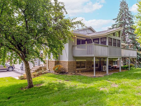 $35,000 insulated three-season porch addition added in 2017. New Furnace and A/C in 2023, plus fresh paint in the main living spaces! Nestled on a premium lot with direct access to scenic walking and biking trails right outside your front door, the home also features a bright and open floor plan and freshly cleaned carpets throughout—making this home truly move-in ready. The heart of the home is the spacious kitchen, complete with raised solid oak cabinets, newer stainless-steel appliances, and ample storage. Just off the kitchen are the sun-filled living and dining areas, with a sliding glass door leading to the vaulted three-season porch showcasing floor-to-ceiling windows and tranquil views. Step outside to a private deck surrounded by mature trees—perfect for morning coffee or peaceful evenings. The main level also includes two generous bedrooms, including a spacious primary suite with a large walk-in closet and ensuite access to the full walk-through bathroom. The main-floor bathroom features an extended vanity, a shower/tub combo, and an abundance of storage, offering both comfort and ease of use. The lower level offers versatile living with a large family room with a bar nook, and an adjacent den—ideal for a home office or future third bedroom addition. A 3/4 bath and dedicated laundry/utility room with a sink provide added convenience. The attached 2-car tuck-under garage includes built-in cabinets for organized storage of tools and toys. Located just minutes from all that Maple Grove has to offer—shopping, dining, parks, and top-rated schools—this home blends quiet, nature-filled living with everyday conveniences!
